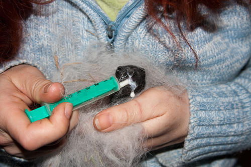 Am ersten Abend haben wir versucht sie mit Kuhmilch zu füttern. Das ist natürlich völlig falsch, doch etwas anderes hatten wir zu dem Zeitpunkt nicht.