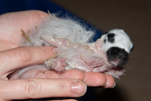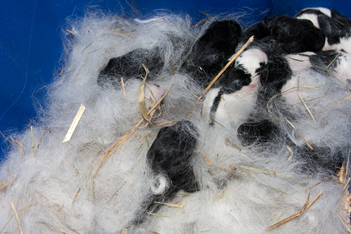 Das Telefon klingelte und unser Nachbar Werner meldete sich. Seine Häsin war gestorben und hatte 11 kleine Häslein im Alter von 8 Tagen hinterlassen. Ob wir es nicht versuchen könnten, die Kleinen mit der Flasche aufzuzuiehen. Klar, natürlich wollten wir es versuchen. In einem Karton, den Werner noch mit Wolle aus dem Nest toten Häsin ausgelegt hatte, holten wir sie zu uns ins Haus. Der kleinste wog gerade mal 68 Gramm. So begann die Geschichte unserer Handaufzucht von 11 kleinen Stallhäslein.